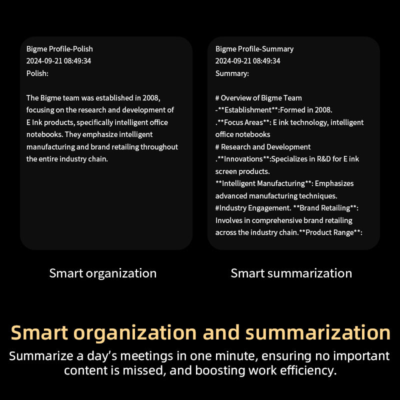 Powerful Features: Free Voice-to-Text, Built-in BigmeGPT 4.0 for Smart Chatting, Drawing, Creative Writing, and More. One-Click Intelligent Meeting Summaries. Advanced OCR Recognition for Faster, More Efficient Reading and Note-taking.