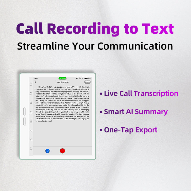 Supports worldwide 4G calling for seamless communication anywhere. Features call recording with real-time transcription and AI-powered smart summarization, boosting work efficiency.