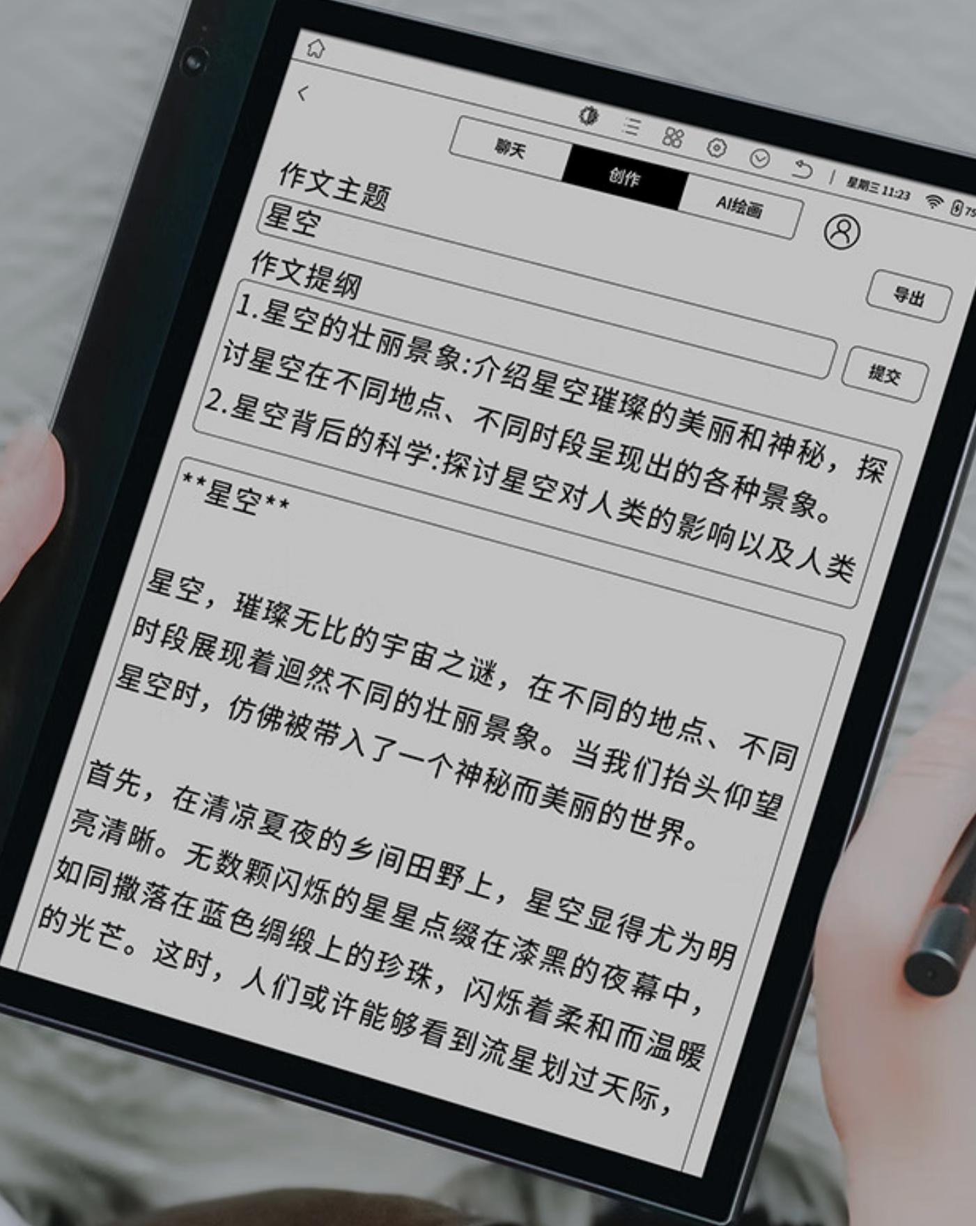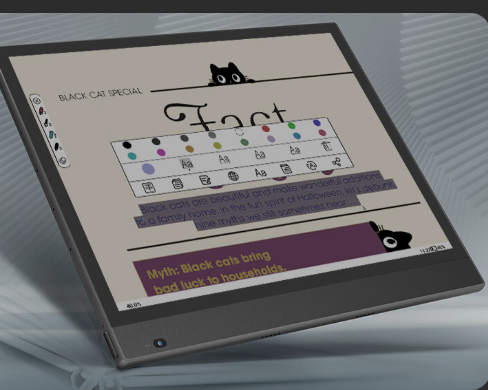 The Inknote X features a 10.3-inch Kaleido 3 display can view black and white and color content. The resolution of the black and white display is 1860×2480 and 300 PPI, while the color screen is 930×1240 with 150 PPI. The hardware itself has a piano black color scheme and has a ledger type of design. The screen is flush with the bezel and protected by a layer of glass.