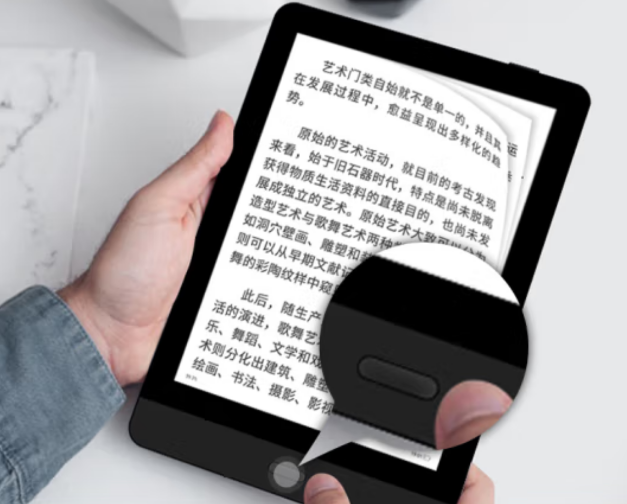 The Bigme Read features a 6-inch E INK Carta HD e-paper display panel with a resolution of 1024×758 and 212 PPI. It has 36 warm and cool LED lights to provide a front-lit display to read in the dark. The colour scheme is black and it has a physical home button on the bottom of the display.