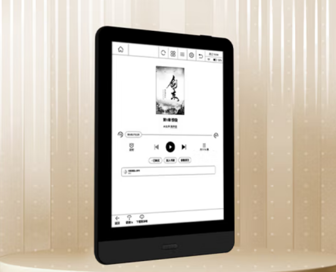 Underneath the hood is a quad-core 1.8GHZ processor, 1GB of RAM and 32GB of internal storage. There is an SD card that is capable of up to 1TB of additional storage. There is WIFI for connecting up to the internet, Bluetooth 5.0 for wireless headphones and dual speakers to listen to audiobooks, podcasts or music. A microphone is available to take advantage of voice communication apps, such as Teamspeak, Zoom, Chime or Discord. You can transfer your own audiobooks or ebooks to the reader via USB-C and it supports TXT, EPUB, PDF, FB2, ZIP, PRC, MOBI, RTF, OEB, Mp3 and more. The device is powered by a 1,300 mAh battery and the dimensions are 122x90x5mm and weighs 170g.