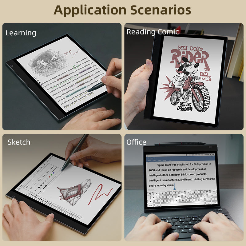 The Bigme InkNote Color features an E INK Carta HD e-paper display with a resolution of 1872×1404 with 300 PPI. The Color panel has been updated to the latest generation E INK Kaleido 3 and has a resolution of 1240×930 with 150 PPI and will be able to display over 5,000 different color combinations. Bigme has developed accumulated color optimization processing technology to display a wider gamut.