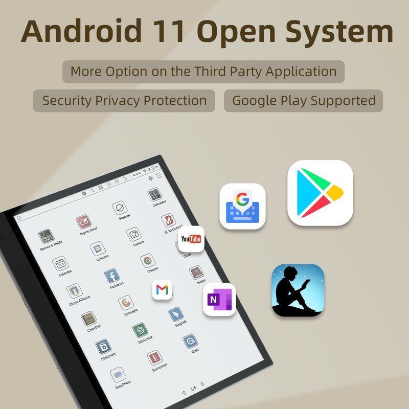 The InkNote Color is running Google Android 11 and ships with Google Play preinstalled. This will give users the ability to download and purchase millions of apps. This means you won’t have to worry about all of the complications of sideloading in apps. There are four different speed modes which give you increased performance to take advantage steaming audio, video, coding, looking at high quality pictures or just wanting to scroll very fast while browsing the web.